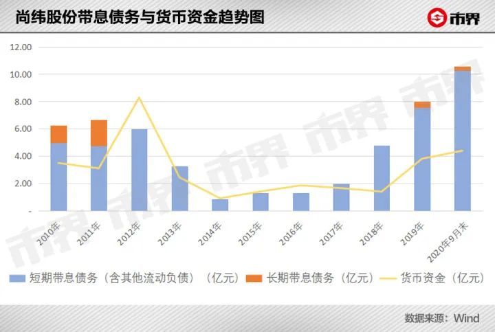 除此之外,此次收购前,截至2020年9月末,尚纬股份账面货币资金只有4.39亿元,但短期带息债务(包括国内信用证及商业承兑汇票)已达到10.25亿元,缺口高达5.86亿元。