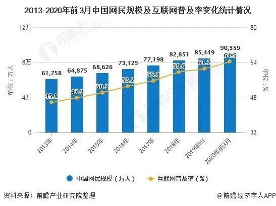 中国互联网络信息中心(CNNIC)发布第45次中国互联网络发展状况统计报告。报告显示,截至2020年3月,我国网民规模为9.04亿人,互联网普及率达64.5%。