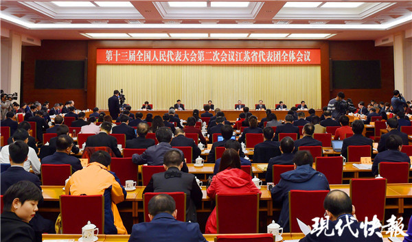 3 月 12 日,十三届全国人大二次会议江苏代表团全体会议现场