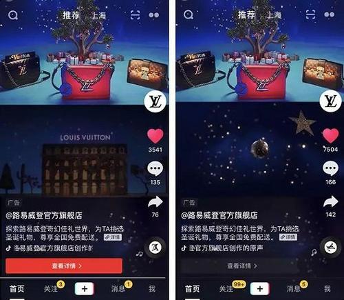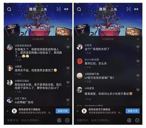 最近LV路易威登在抖音投放了开屏广告、信息流广告,在12月18、19日两天,有不少抖音用户看到了LV的广告内容,惊呼“路易威登,你的成功让多少女孩子着迷”、“广告真好看”、“赚钱有动力了”……