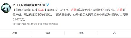 其实这早已不是谷歌搜索第一次在经济领域出现如此大的bug。2016年底谷歌搜索错误显示了美元与人民的兑换汇率,人民币兑换美元一月内居然出现两次贬值,引起了华人圈一阵恐慌。