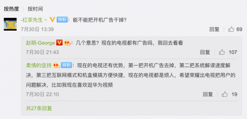 事实上,不少用户都深受开机广告的困扰。记者在翻看网友相关意见中发现,“如何去除开机广告”、“哪些电视没有开机广告”成为了用户针对电视的高频率讨论话题之一。若荣耀智慧屏真的取消开机广告,无疑将又是一个极具竞争力的卖点。