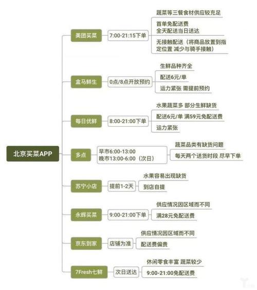 就在两三个月前,买菜对于很多城市居民而言仍是一件颇具挑战的事。小区封闭,菜市场和超市的停运,使得需求暴增的用户开始涌入线上平台。但是,包括盒马鲜生、每日优鲜等都出现过(因限时限次配送)需要用户定闹钟抢购的情况。此前北京居民的生活圈甚至一度流传着一张《北京抢菜指南》,上面标注着各个生鲜电商平台不同时间点抢购的难度及大概库存状况。