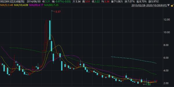 业绩萎靡不振,二级市场的股价表现,同样也让美邦服饰“伤不起”。截至10月20日收盘,美邦服饰报2.41元/股,总市值61亿元。
