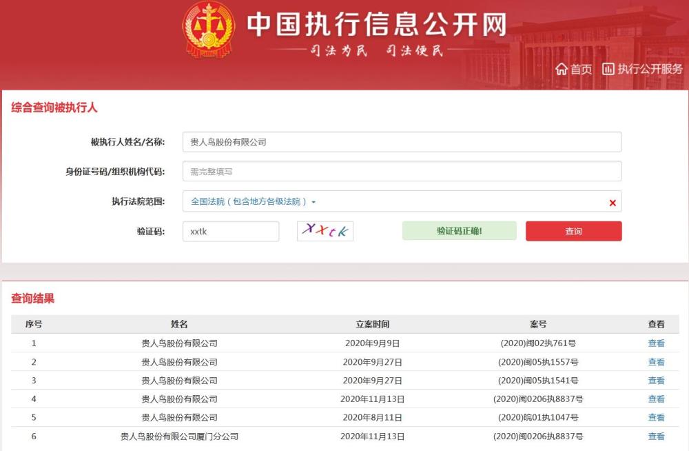 需要一提的是,中国执行信息公开网显示,贵人鸟有多条被执行人信息,累计执行标的过亿元。