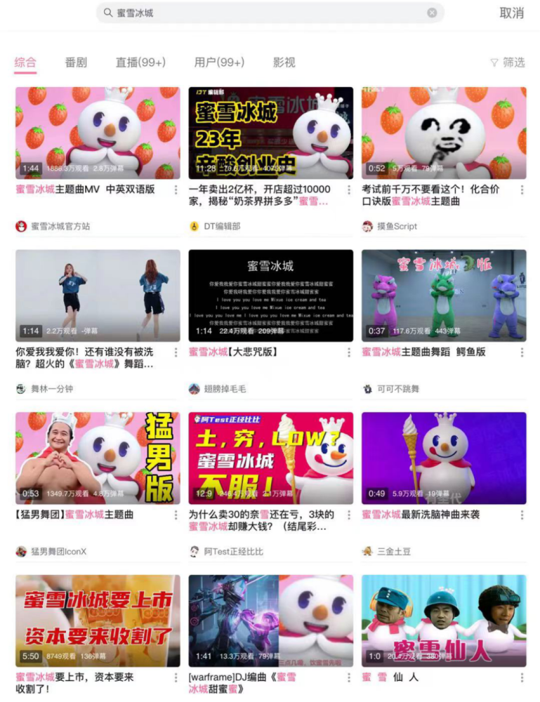 蜜雪冰城聚焦三四线城市下沉市场,注重营销推广,一首“你爱我,我爱你,蜜雪冰城甜蜜蜜”燃烧了整个夏天,在B站,这首洗脑神曲被疯狂改编二创传播,飞速走红。