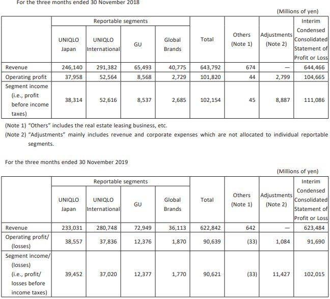 图为优衣库母公司迅销集团第一财季主要业绩数据