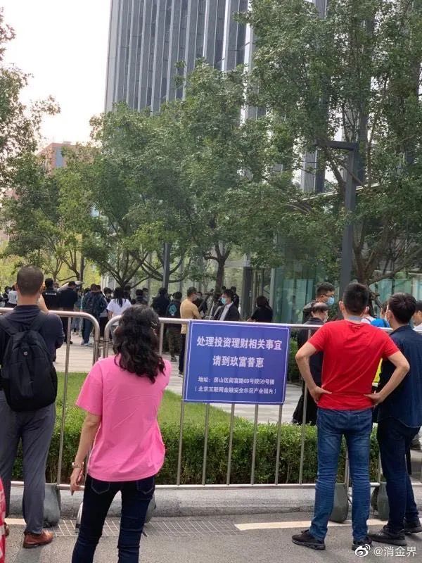 据一位出借人发布的视频显示,在玖富集团朝阳区办公地点,有很多人在楼外等候。