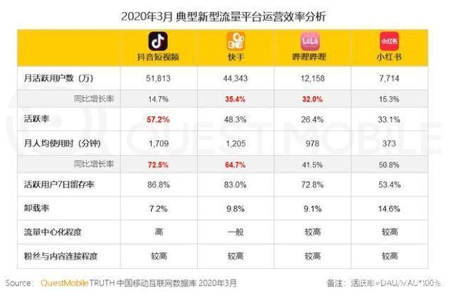 据QuestMobile统计数据,2020年3月抖音月活跃用户数达到5.18亿,同比增长14.7%,月人均使用时长为1709分钟,同比增长72.5%。