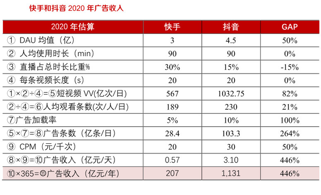 尽管“快抖”双方在平台流量与使用工具上类似,但对比快手抖音两大平台广告刊例价格后会发现,无论是开屏还是信息流的广告投放方式上,抖音的刊例价平均高于快手 30%-80%,快手的广告单价仍有较大的上升空间。