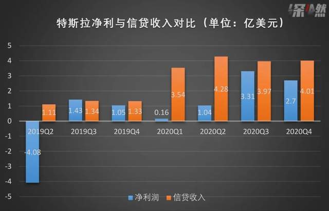 信贷收入相当于是,车企想要在美国、欧洲国家卖车,需要销售一定数量的新能源车或其他零排放汽车。如果没达标,就只能向有积分的企业购买碳排放积分。特斯拉卖了这么多电动车,手里攥着相当多的碳排放积分,因而靠卖积分实际上获得了一笔不菲的收入。2019年特斯拉靠卖碳排放积分直接赚了5.49亿美元,2020年这笔收入涨到15.8亿美元。