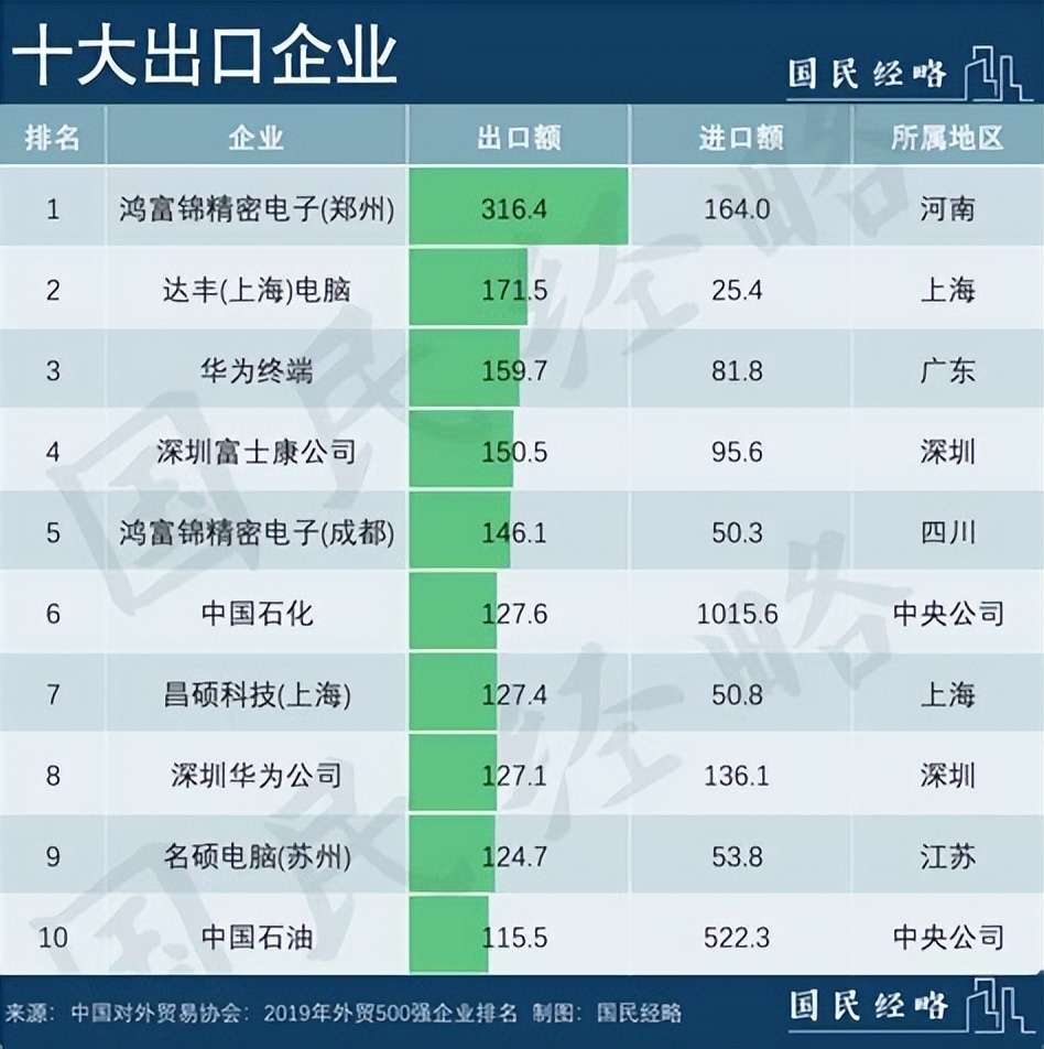 大陆富士康企业2022年进口总额约5400亿元人民币,占大陆进口总额的3.0%,在非能源类企业在排第一;出口总额约8490亿元人民币,占中国出口总额的3.5%,在是大陆商品出口多年的NO.1。