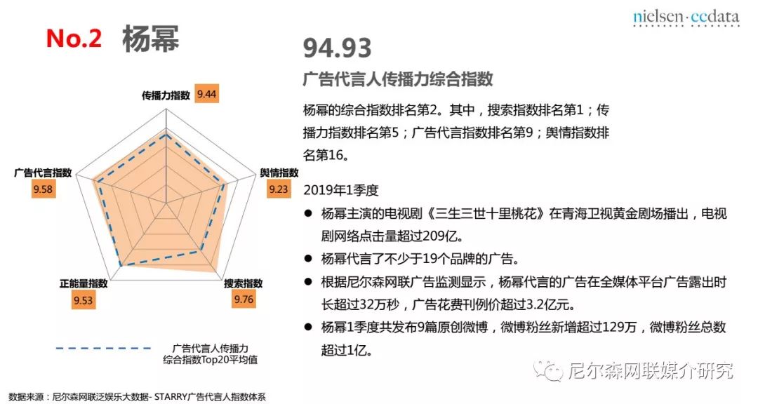 尼尔森网联联合中国广告协会代言人委员会,发布“中国广告代言人传播力综合指数2019年第一季度榜单”。