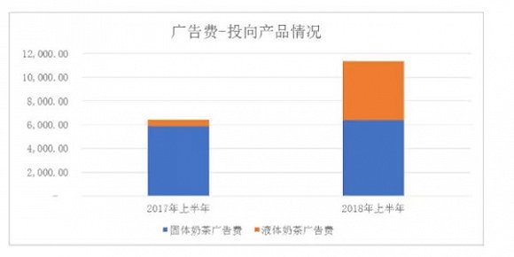 具体而言。2018 年上半年香飘飘投放广告费 1.13亿元,其中6387万元用于固体奶茶广告,4969 万元用于液体奶茶广告。也就是说,在固体奶茶广告费用投入微增的情况下,香飘飘又砸了近5千万用于新品的广告投入。