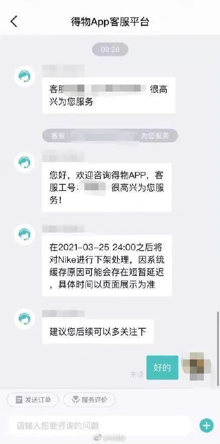 先是“得物APP客服回应下架耐克”,一份顾客与得物客服的聊天记录截图疯传网络。