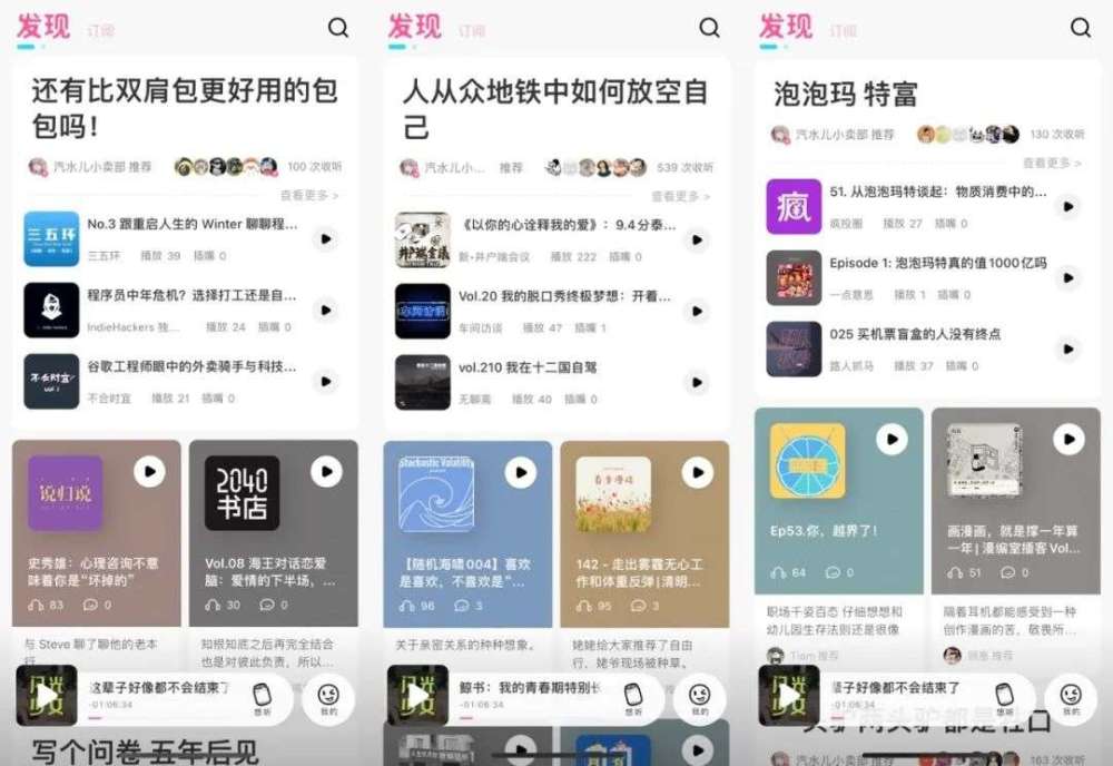 在“小宇宙”诞生之前,绝大多数播客主依靠苹果播客进行内容分发,小宇宙团队有社交平台“即刻”的开发经验,产品设计简洁,利用RSS的方式聚合了最多数量的中文播客,也在一定范围内助推了“人人都听播客”的热潮。