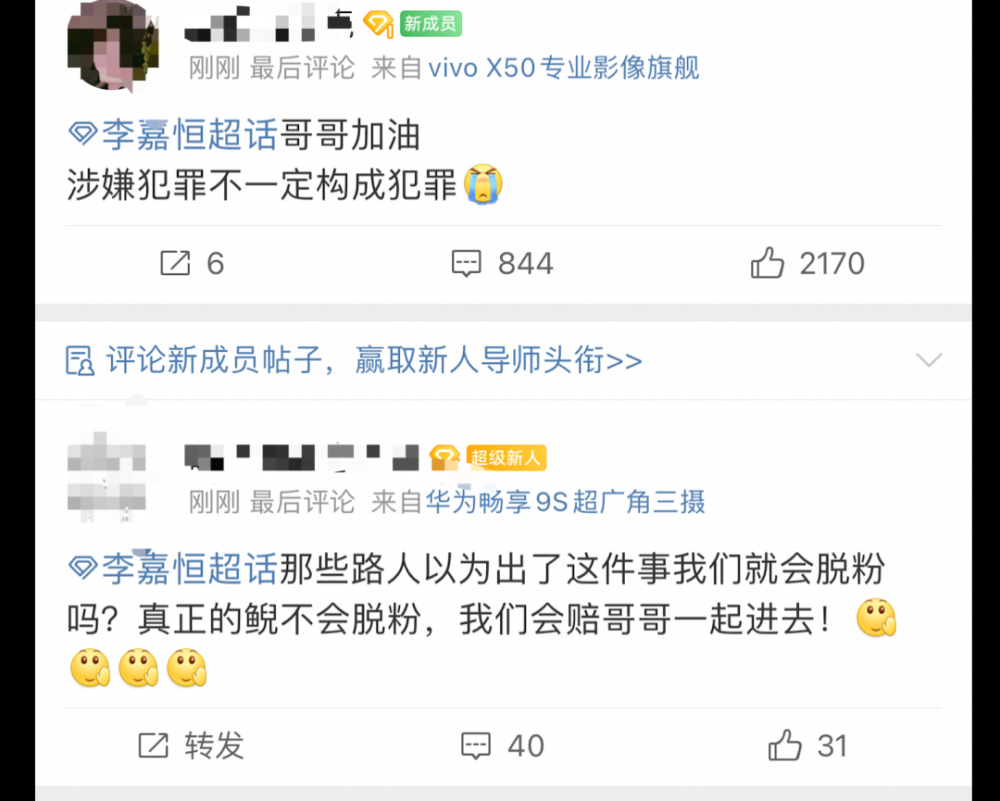 那次我去吴亦凡超话、李嘉恒(吴的曾用名)超话围观了一下,发现不少粉丝因为他敢嘴硬还在力挺,小粉丝大概想不到律师函是可以批发的。当时随手记录了一下,现在已成绝版。因为昨晚几个小时内这两个超话以及kriswu、梅格妮、每个你等超话纷纷关闭。
