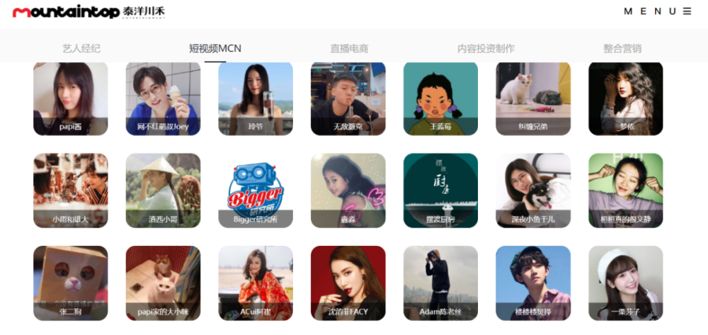 在泰川洋禾官网可以看到,以papi酱为主的短视频MCN矩阵如今已经气候小成。美食、港风、评测等众多领域的达人都有涉及,依靠papi酱拿到第一笔投资的papitube似乎摆脱了大IP依赖症。