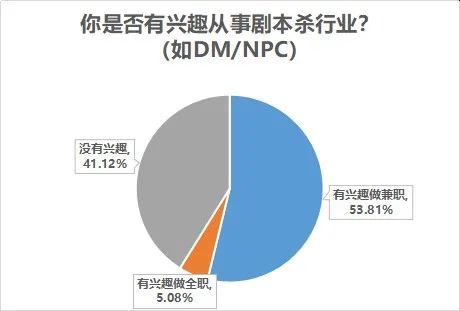 南都民调中心曾在2021年7月发布过一个调查,根据收回的401份有效问卷,剧杀玩家中想做兼职或全职DM的接近六成。