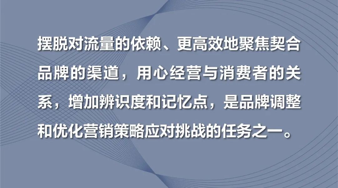从上述分析来看,线上线下的高效结合传播已成为较多品牌的营销策略。以电梯媒体、互联网视频类媒体如抖音、及微博微信社交媒体为主的“双微一抖一分众”依然是融入消费者生活场景、品牌圈粉种草、价值互补的主要渠道。新常态趋势下,摆脱对流量的依赖、更高效地聚焦契合品牌的渠道,用心经营与消费者的关系,增加辨识度和记忆点,是品牌调整和优化营销策略应对挑战的任务之一。
