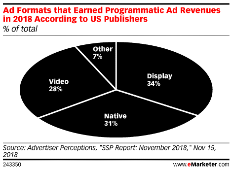 2018年11月,Advertiser Options对美国发行商进行了一项研究显示,原生广告发行商的广告收入占其广告程序化购买收入的31%。