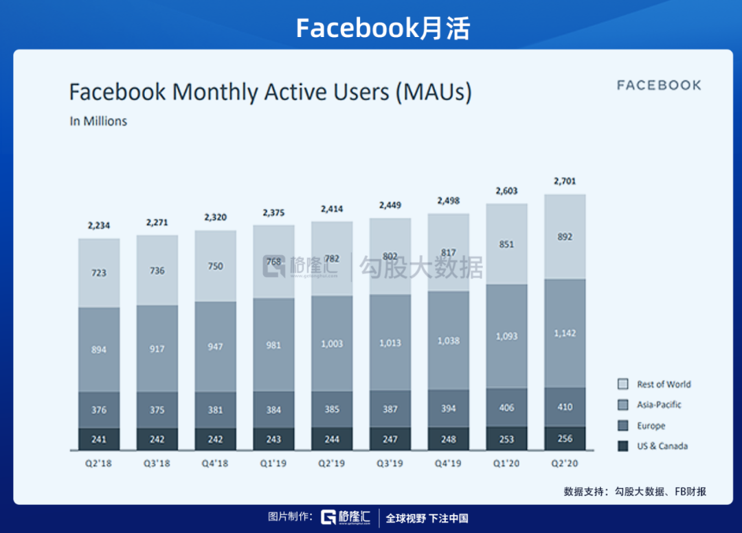 二季度是美国疫情最严重的情况,全球大部分人都在宅家,FB的流量得到了大幅上涨。