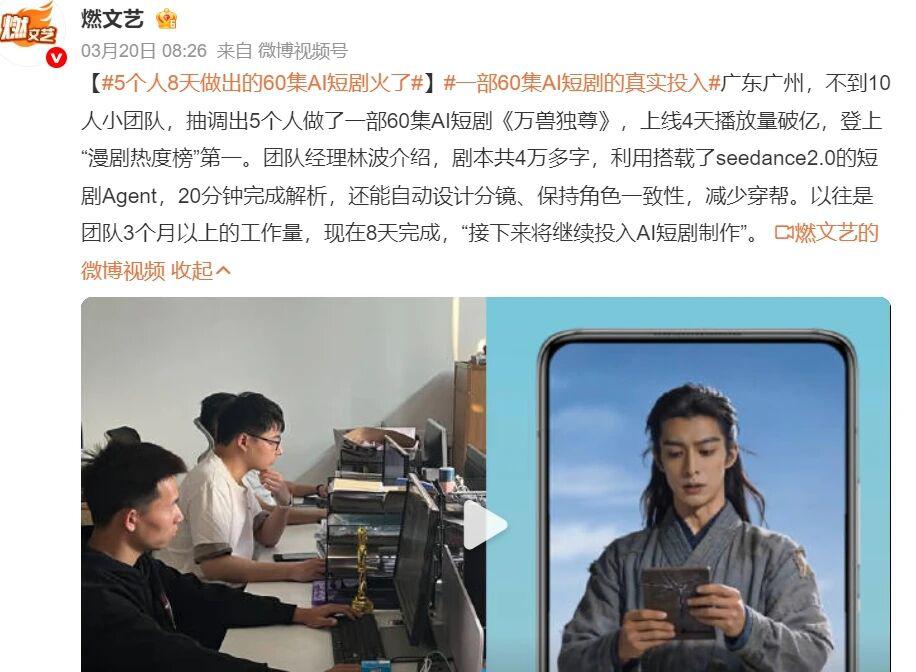 有数据显示,今年 2 月百强漫剧里,AI 仿真人漫剧占比接近 6 成,多部作品上线几天,播放量就破亿。