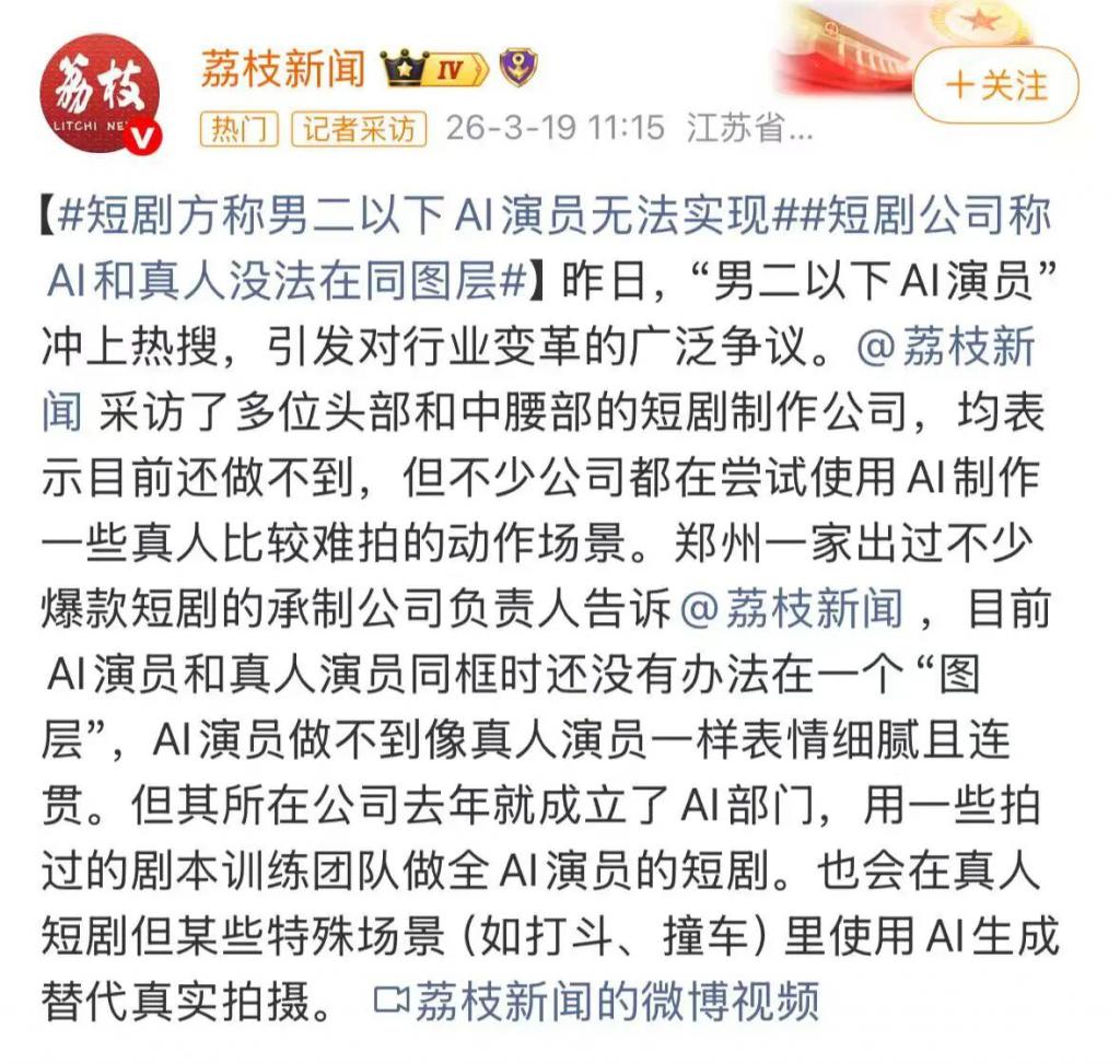 与其说 AI 在 " 取代 " 演员,不如说在倒逼行业升级。