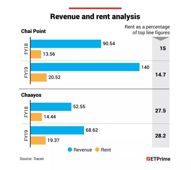 Chai Point和Chaayos的营收与租金占比分析,来源:Tracxn